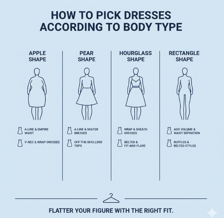 Finding the right dress is more about knowing what flatters your shape, not following trends blindly. So here’s a chill guide to help you figure out what type of dresses match your body — and how to slay them